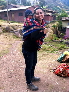 Nailed it! I really admire how women walk around the mountains with their Wawa's like that. I loved carrying that boy around. His Chuyo says CUSCO. (Chuyo=hat)
